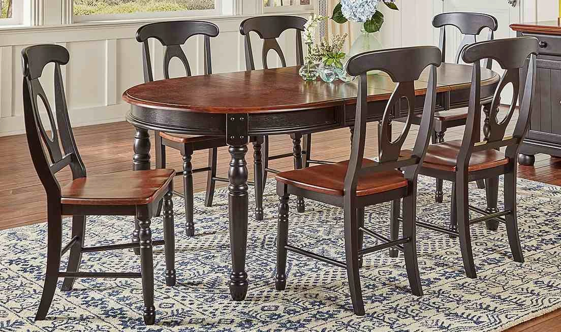 The solid hardwood British Isles 7-piece drop leaf table set is designed to appeal to those who want a traditional and country style at a great value. This two-tone oak and black finish is a nice updated look that complements many homes and styles. This collection contains a dining table and six side chairs. Read More