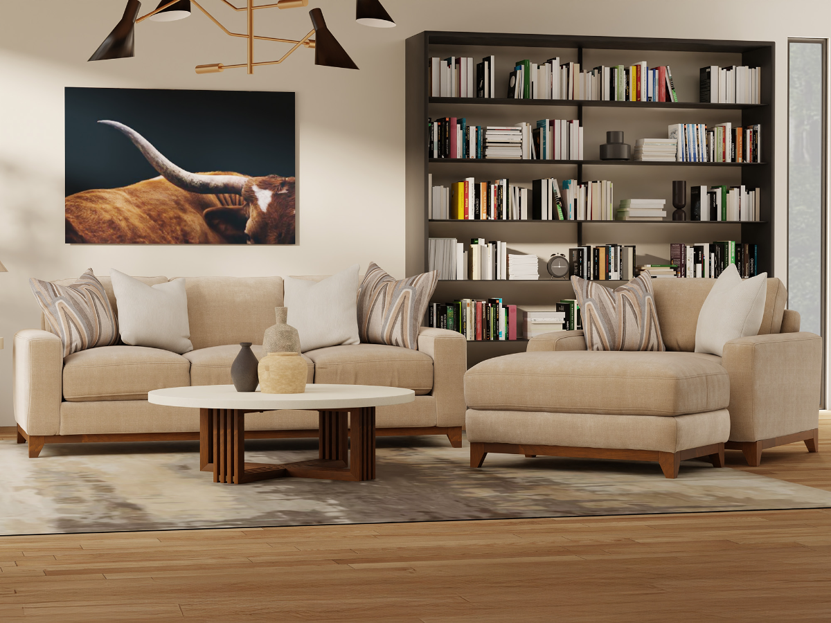 The Arlington Sofa, Chair, and Ottoman Set combines style and comfort, perfect for enhancing your living space. Upholstered in soft brown polyester fabric, the sofa and chair feature a mid-century modern design with square arms and plush down-filled accent pillows for a cozy touch. The extra-deep seating, measuring 34 inches, ensures plenty of comfort for lounging or entertaining. The fully padded sides and backs add durability and a refined look, while D-rings secure the seat cushions, preventing them from shifting. The accompanying ottoman provides a versatile addition, serving as a footrest or additional seating. This set seamlessly blends modern aesthetics with functionality, making it an ideal choice for any contemporary home. Read More