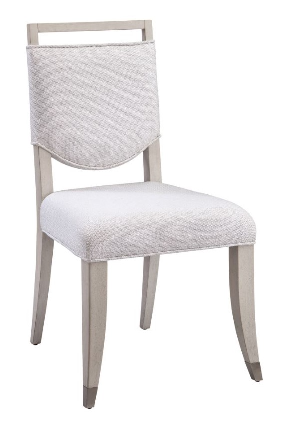 The Korey dining chair features a modern boho/coastal inspired design with a solid wood frame in a neutral white-washed finish, heavily textured ivory 100% polyester fabric, and brushed nickel feet caps on the chair’s front legs. Read More
