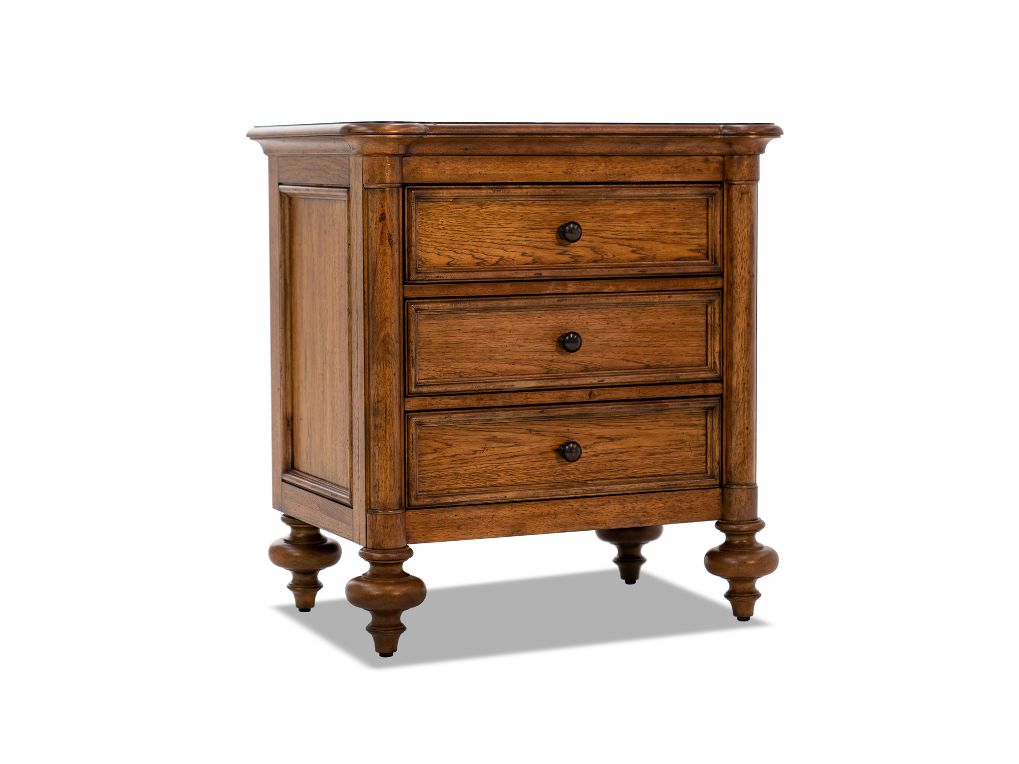 The Berkshire Nightstand is a charming and functional bedside companion, featuring a warm Cognac-colored finish and a casual European traditional style. Crafted from hickory veneers and rubberwood solids, this nightstand blends classic design with quality construction. With three drawers, including a cedar-lined bottom drawer, the nightstand provides ample storage space for your bedside essentials. The inclusion of two outlets and a USB port offers convenient charging options for your devices. The adjustable levelers ensure stability on various floor surfaces, while handholds in the back make it easy to reposition. Elevate your bedroom with the Berkshire Nightstand, where thoughtful design and practical features come together to create a stylish and functional piece for your sleeping space.
