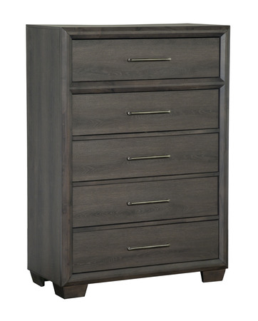 Elevate your bed room with this Lombard Grey Chest from Bernards. Shown in a grey color finish, this dresser features 5 drawers that provides storage for personal items and can be a decorative piece in the room. Make a bold statement by incorporating this furniture to your home. Read More