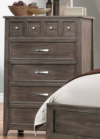 Elevate your bed room with this Modesto Chest from Bernards. Shown in a taupe color finish, this chest features 5 drawers that provides storage for personal items and can be a decorative piece in the room. Make a bold statement by incorporating this furniture to your home. Read More
