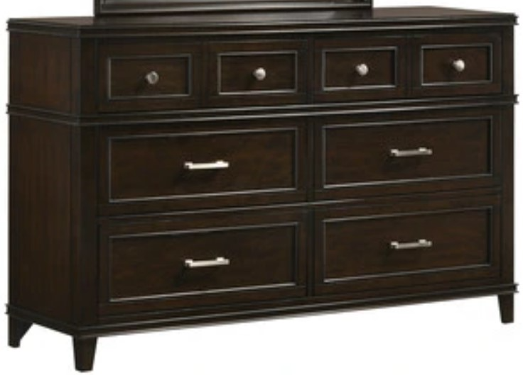 Elevate your bed room with this Nova II Dresser from Bernards. Shown in a dark brown color finish, this dresser features 6 drawers that provides storage for personal items and can be a decorative piece in the room. Make a bold statement by incorporating this furniture to your home. Read More