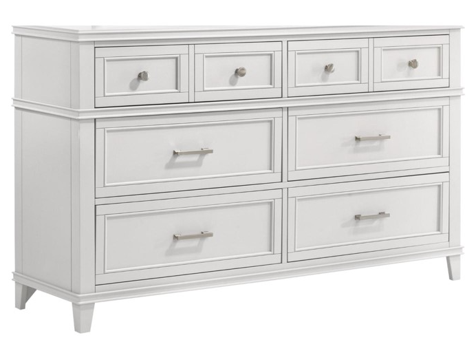 Elevate your bed room with this Nova II Dresser from Bernards. Shown in a white color finish, this dresser features 6 drawers that provides storage for personal items and can be a decorative piece in the room. Make a bold statement by incorporating this furniture to your home. Read More