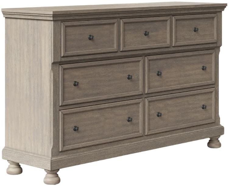 The Prescott Dresser is a beautifully crafted piece featuring a sleek grey wood and timeless design, part of the Prescott Grey Bedroom Set. With seven spacious drawers, it provides ample storage for clothing, accessories, and essentials, while its sturdy construction ensures durability. Read More
