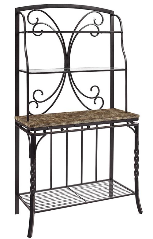 Beautiful, unique baker’s rack that features forged twisted metal legs and a faux marble serving surface. The Bernards Tuscan Baker's Rack is a traditional piece that combines both functionality and aesthetic appeal. Read More