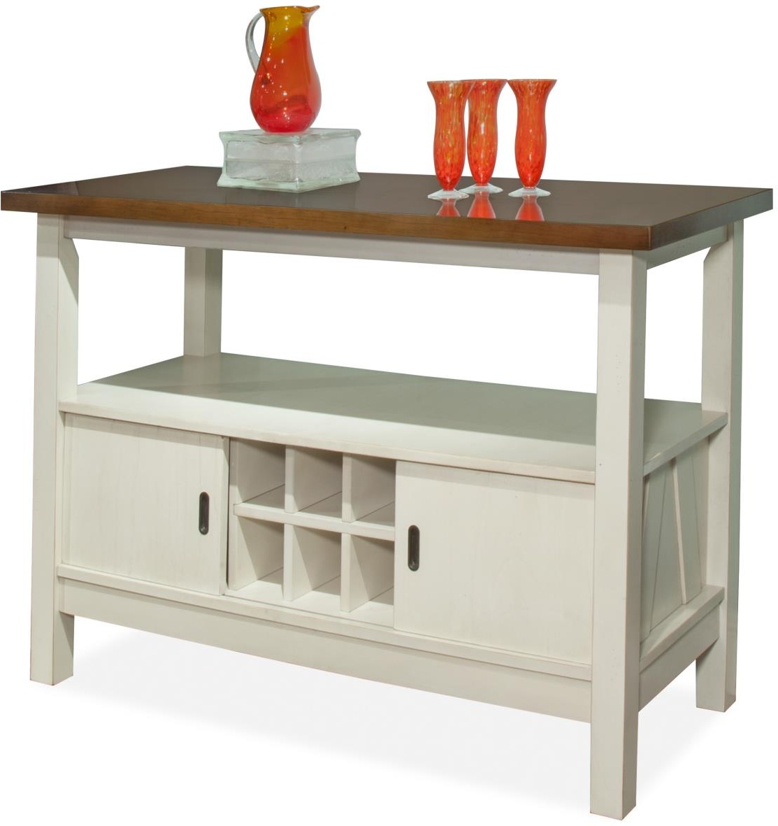 In a lovely sophisticated 2-tone finish, updated temporary, informal dining set. The dining table at the Refactory features a "saw horse" foundation and a rustic cherry finish. The 2-tone dining table and sliding gate server compliment the collection. Finish off white and rustic cherry is very disturbed.