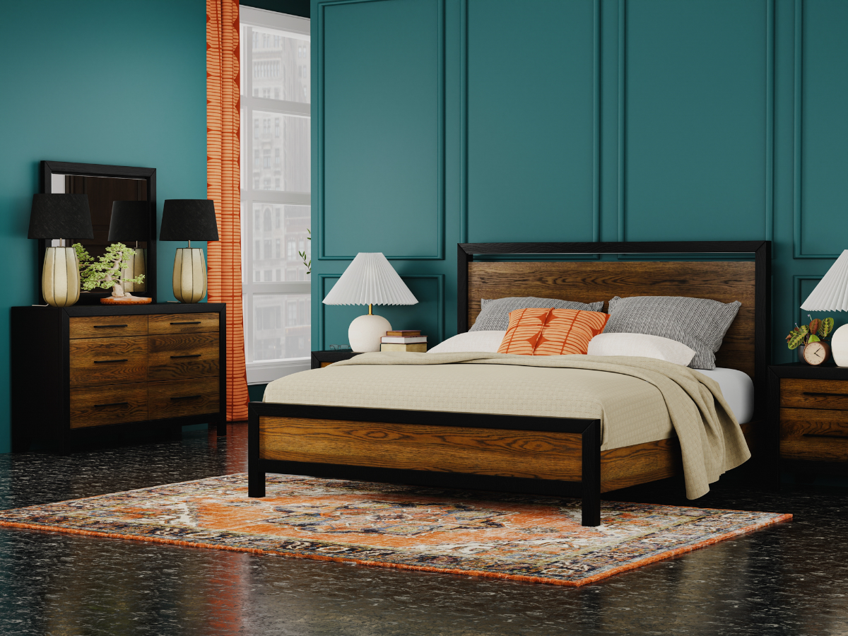 The Blair Bedroom Set offers bold, modern design with thoughtful features and durable craftsmanship. Available in king or queen sizes, this set includes the striking Blair Bed along with the coordinating Dresser and Mirror. With a rich mix of charcoal-colored framing and warm brown wood tones, each piece in the set delivers eye-catching contrast and clean contemporary lines. The bed features a built-in touch light along the headboard, adding a soft ambient glow to your space while enhancing its sleek aesthetic. Read More