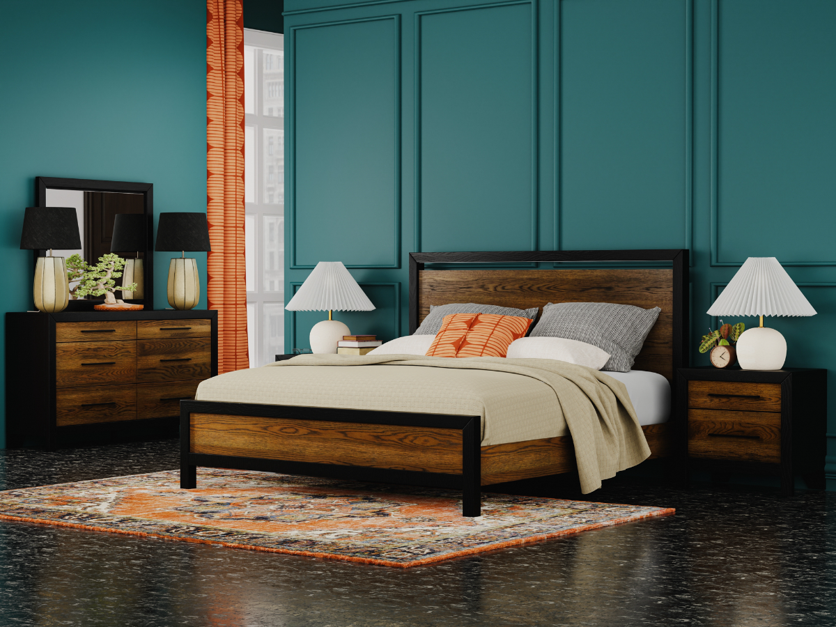 The Blair Bedroom Set offers bold, modern design with thoughtful features and durable craftsmanship. Available in king or queen sizes, this set includes the striking Blair Bed along with the coordinating Dresser and Mirror. With a rich mix of charcoal-colored framing and warm brown wood tones, each piece in the set delivers eye-catching contrast and clean contemporary lines. The bed features a built-in touch light along the headboard, adding a soft ambient glow to your space while enhancing its sleek aesthetic. Read More