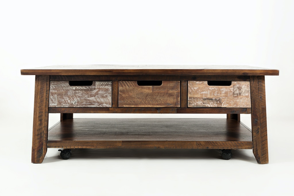 Varied finish tones on the drawer fronts, overall distressing, and industrial casters pair with solid construction and outstanding value make Jofran's Painted Canyon Collection an ideal add to any home. Collection includes Bedroom, Media, Dining, and Occasional pieces.
