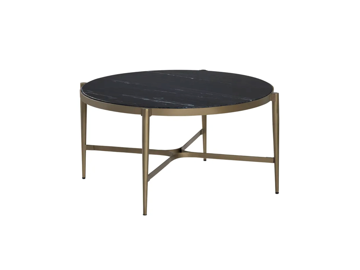 At the base, the trio of slender legs converge in a sculptural center point, blending stability with artistic design. Topping the frame is a round slab of natural black marble, offering bold contrast with its rich, organic texture and subtle veining. The combination of luxurious materials and thoughtful construction makes the Cecilia a standout piece. Perfect for anchoring your seating area, the Cecilia Cocktail Table pairs visual drama with everyday functionality, offering a stylish surface for decor, drinks, or conversation-starting accents.
