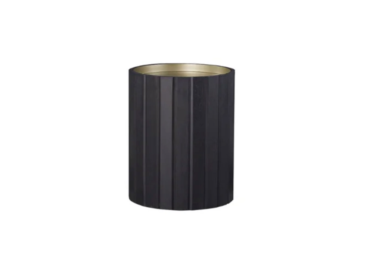 The Channel Round End Table is a sophisticated accent piece that blends modern design with timeless craftsmanship. Featuring peppercorn-finished sides with a vertical slatted pattern, this table adds texture and visual depth to any space. The striking contrast of the gold-colored inset top enhances its elegance, making it a standout addition to your living room, bedroom, or office. With its round shape, the Channel End Table offers a soft, organic aesthetic that complements a variety of décor styles, from contemporary to transitional. Its sturdy construction ensures durability, while the compact size makes it a versatile choice for small or large spaces. Whether used to hold a lamp, display decorative items, or serve as a convenient spot for drinks and essentials, this table is as functional as it is stylish. Perfect as a standalone piece or paired with the Channel Cocktail Table, this end table elevates your home with its refined details and high-quality finish. Bring a touch of modern sophistication to your space with the Channel End Table, where bold design meets everyday practicality.