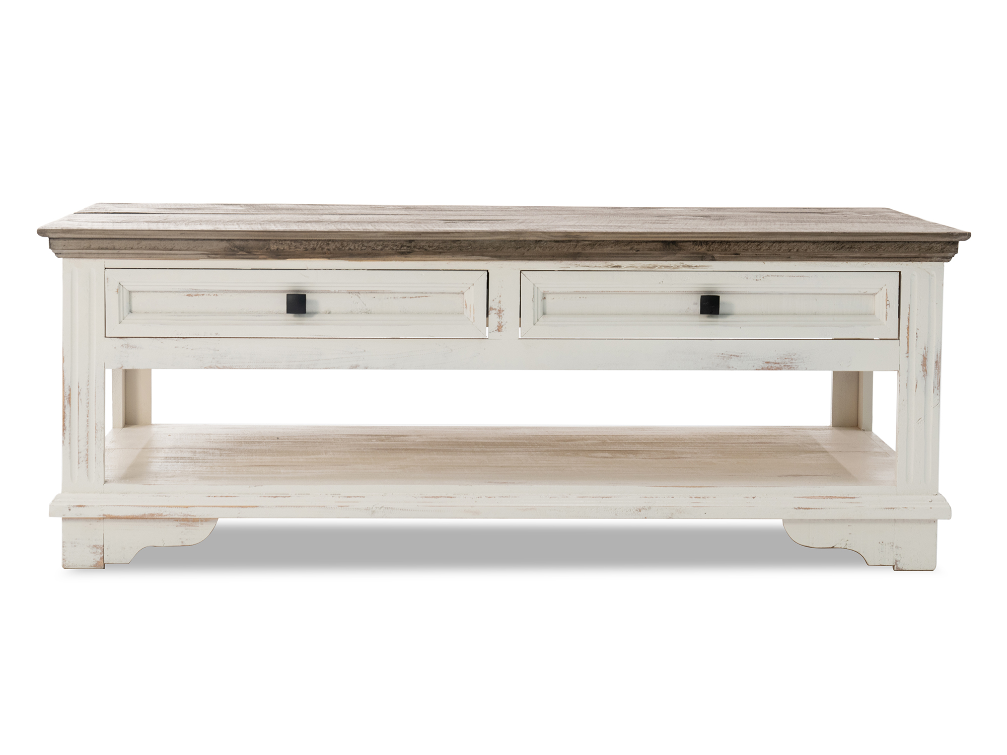 The Charlie Table collection brings rustic charm to your living space with its two-tone finish in distressed white and a brown top. Available in Cocktail, End, and Sofa Table variations, each piece exudes character and style.Both the Cocktail and Sofa Tables feature two drawers, while the End Table comes with one drawer, offering practical storage solutions. Additionally, all tables in the Charlie collection provide an open shelf underneath, adding versatility to your storage needs.Embrace the timeless appeal of the rustic design, where the distressed white and brown tones effortlessly blend, creating a cohesive and inviting atmosphere. The Charlie Table collection is a statement of both elegance and functionality, enhancing your home with its rustic charm and thoughtful design. Read More