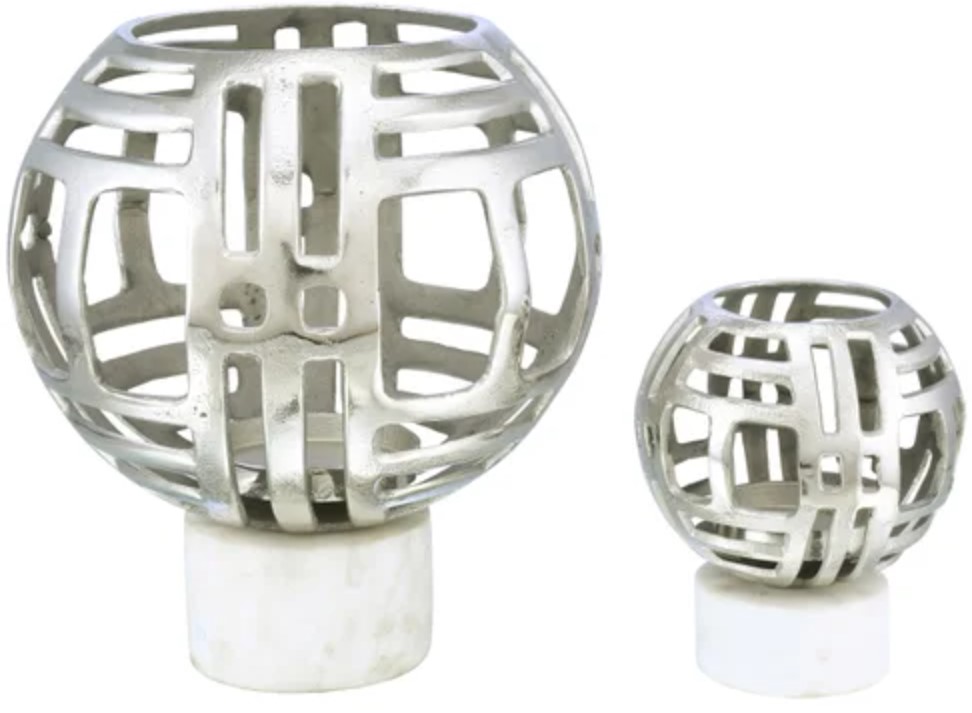 Bring elegance to your home with the Crestview Collection Finn Tea Light Holder. Featuring a silver finish over intricately carved aluminum and marble base, this finn tea light holder stands at 13" and 8" tall and will surely add an elegant touch to any space. Read More