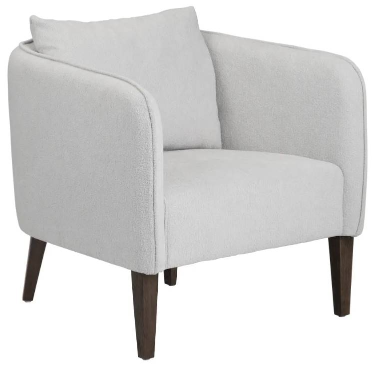 The Raine accent chair showcases a refined design with brown legs and elegant gray fabric. Its sturdy wooden legs provide durability, while the plush gray upholstery ensures comfort. Perfect for any decor, this chair adds a touch of sophistication and transitional charm to your living space. Read More