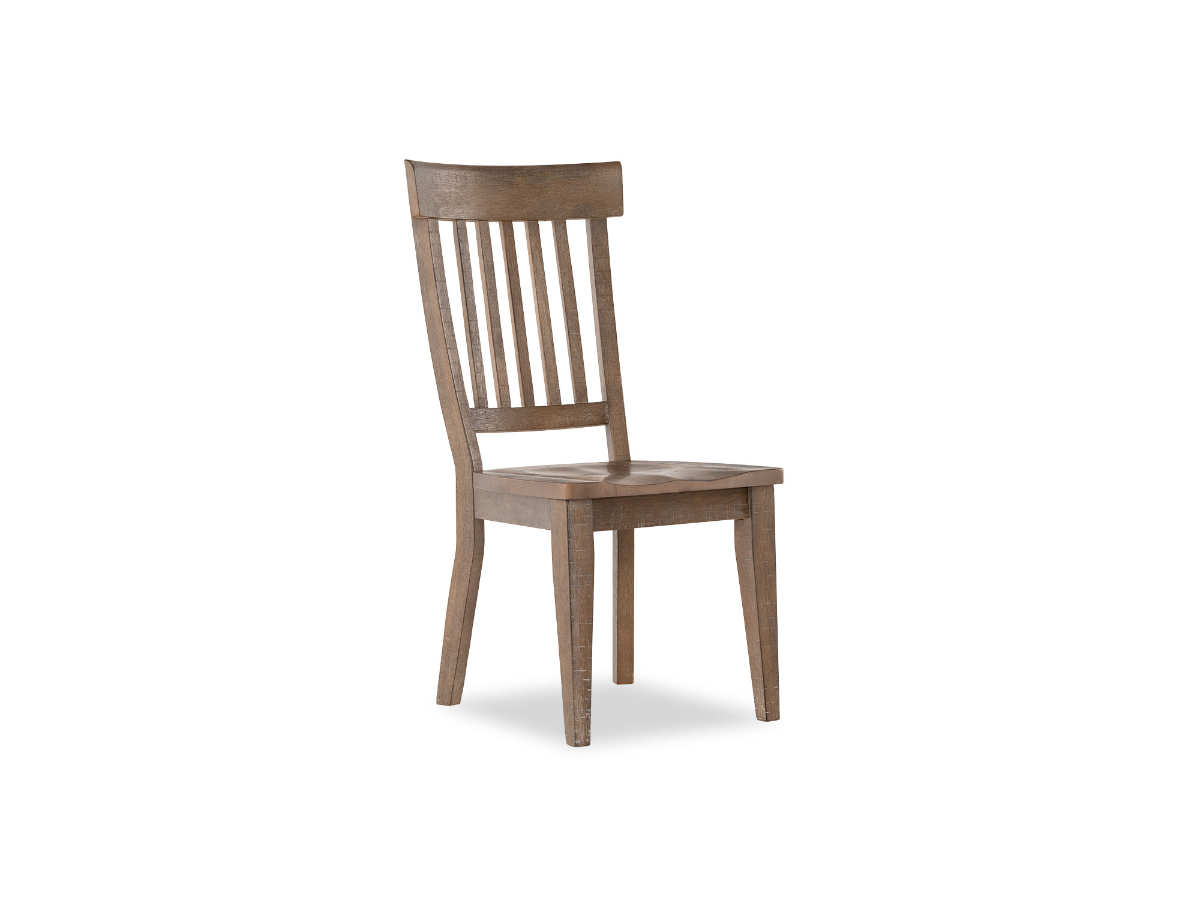 The Dale Side Chair brings Rustic Ranch styling to your dining space with its distinctive distressed finish and shaped wooden seat for added comfort. Featuring a schoolhouse back, this chair exudes timeless charm and a casual heirloom feel. Constructed from pine and rubberwood solids, as well as engineered hardwoods, the Riverdale Side Chair is built for durability and longevity. The saw rasping and extra distressing contribute to its rustic appeal, giving your dining area a warm and inviting ambiance. Embrace the Driftwood finish that enhances the character of the Dale Side Chair, creating a perfect balance of comfort and rustic elegance. Whether used as a standalone piece or part of a dining set, this chair adds a touch of heritage to your dining experience. Read More