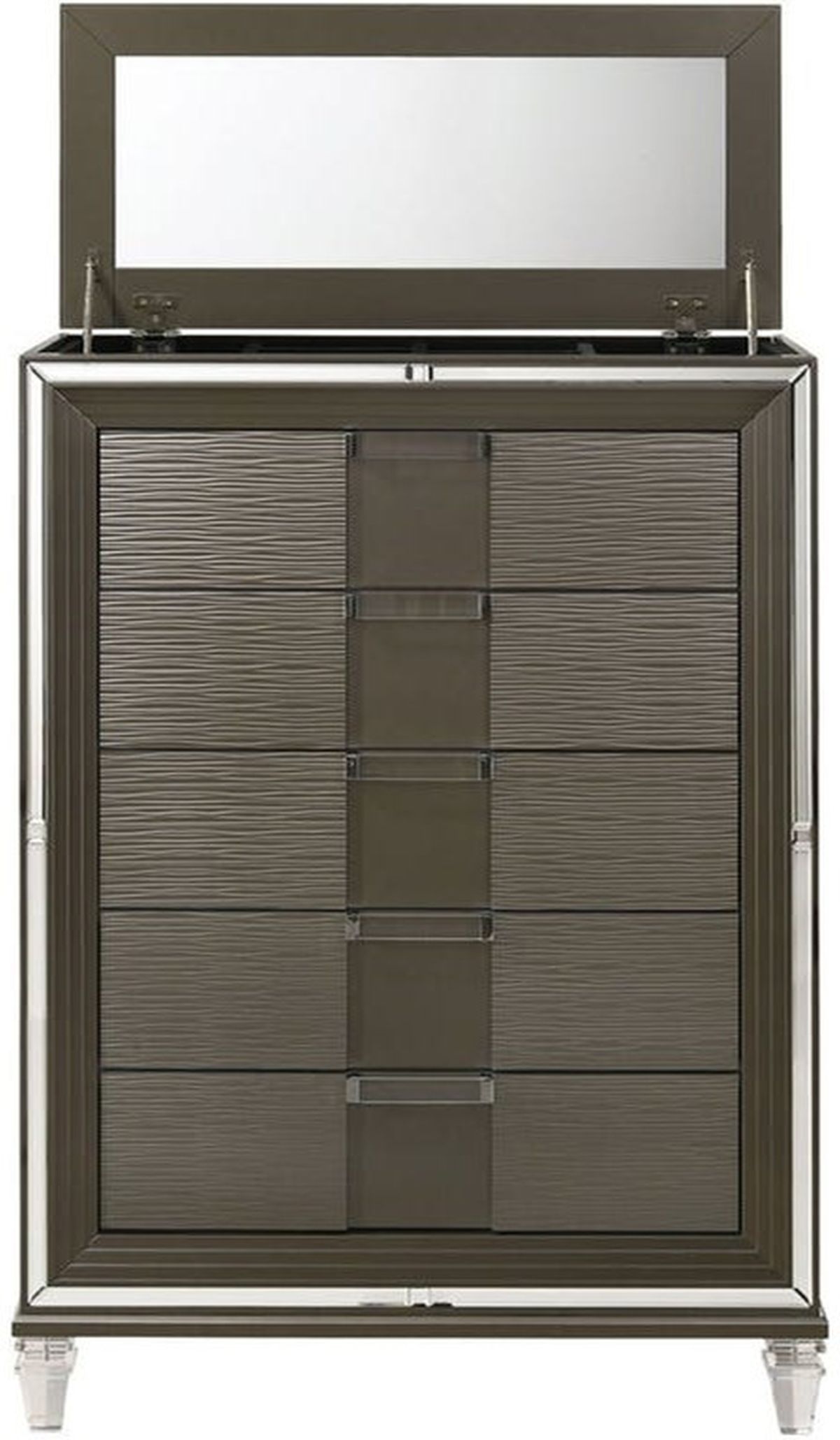 Bring dazzling style while making the most of the space you have in your bedroom with this chest of drawers. With plenty of spots to stow away your favorite items of clothing, this chest also includes a stylish lift top mirror for your to admire your outfit in each morning.