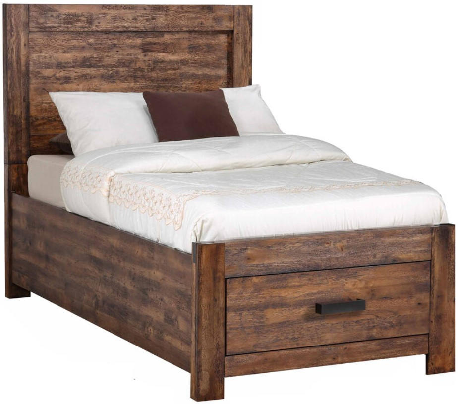 Maximize space and style with this smartly designed twin platform storage bed. Finished in a warm chestnut tone, it features clean lines and built-in drawers to keep your room neat and organized. Perfect for smaller bedrooms, this bed delivers both comfort and practical storage without sacrificing looks. Read More