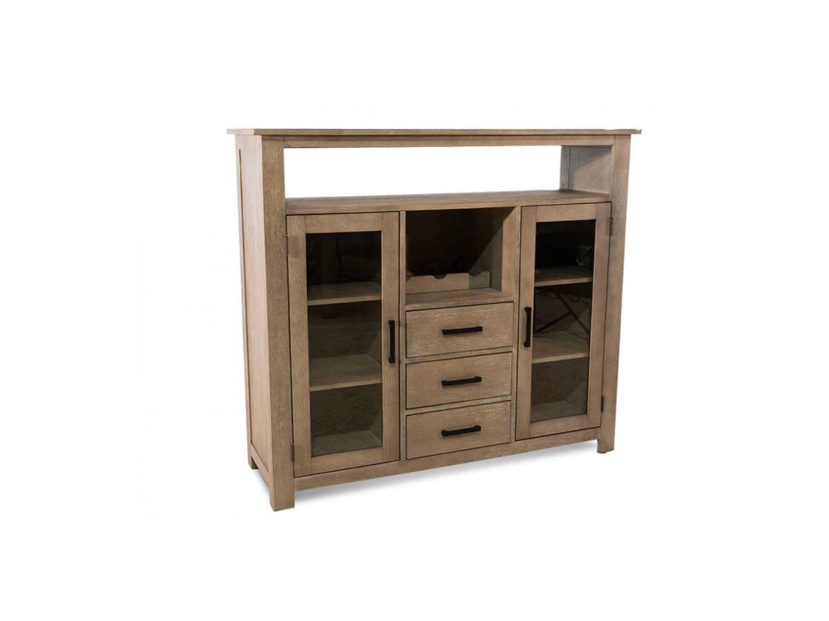 Enhance your dining area with the Fisher Server, a stylish and functional addition to your space. Crafted from high-quality grayish wood, this dining server exudes a modern yet timeless appeal. The open shelf above two door cabinets provides ample storage for your dining essentials, while the three drawers offer convenient space for keeping smaller items organized. The built-in bottle rack adds a touch of sophistication and allows you to showcase your favorite wine or liquor bottles. With its sleek design and versatile storage options, the Fisher Server combines practicality with contemporary elegance, making it the perfect companion for your dining room.