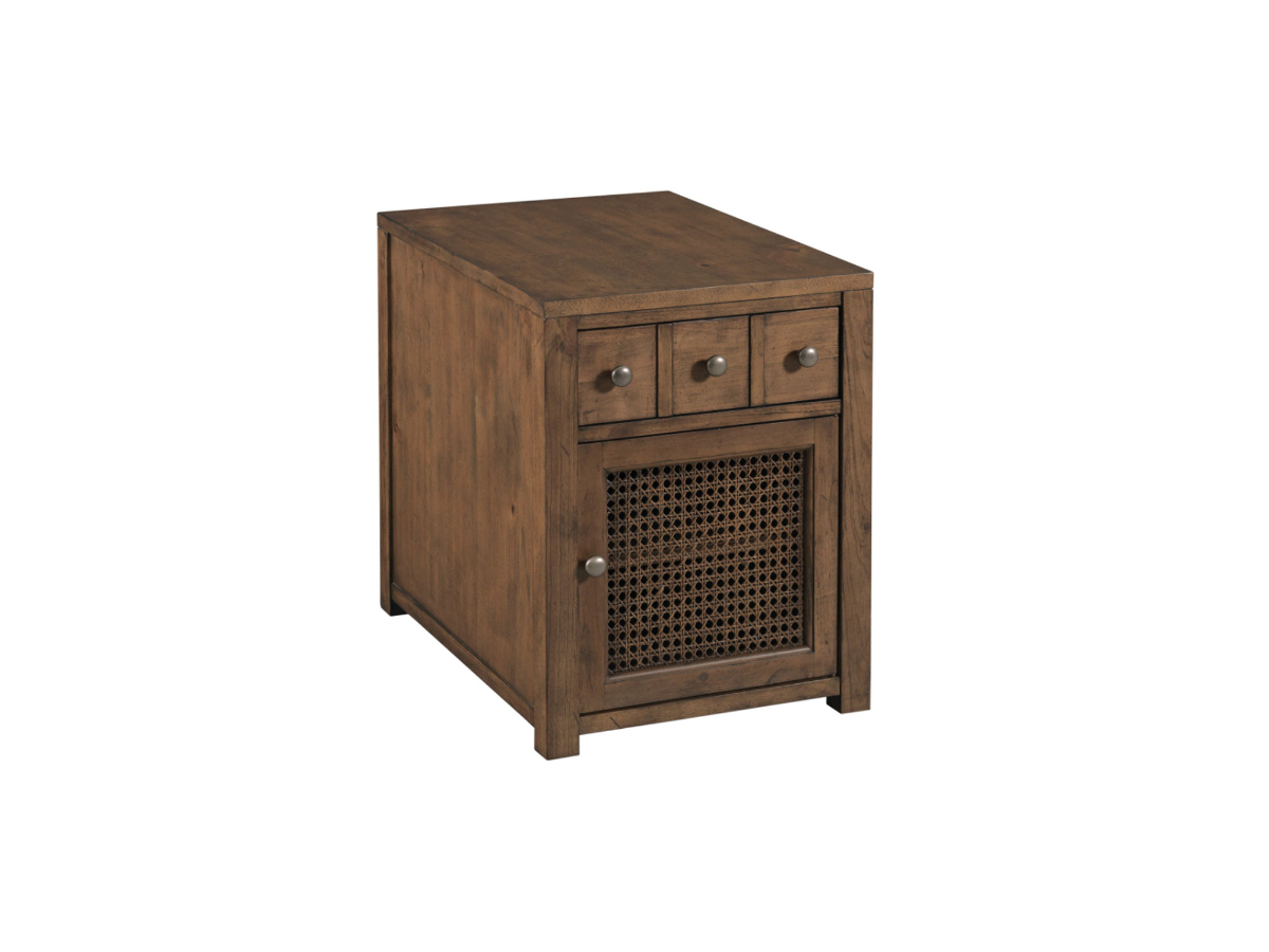 The Forrest Table collection offers a range of stylish and functional options for your living space. The Round Cocktail Table features a cane accent under a glass top, adding a touch of elegance to your room. With a Hazel finish on Alder veneers and select hardwoods, this table exudes warmth and charm. Added casters ensure easy mobility, allowing you to rearrange your space effortlessly. The End Table boasts a casual transitional feel with a hint of British West Indies influence, thanks to its cane accents underneath the glass top. The table is supported by simple Parsons style legs and features apothecary style drawers, adding a touch of vintage charm to your decor. The Accent Table shares a similar design to the End Table but features a door instead of an open shelf on the bottom. This adds versatility and storage options to your living space. Whether used individually or as a set, the Forrest Tables are sure to enhance the beauty and functionality of your home. Read More