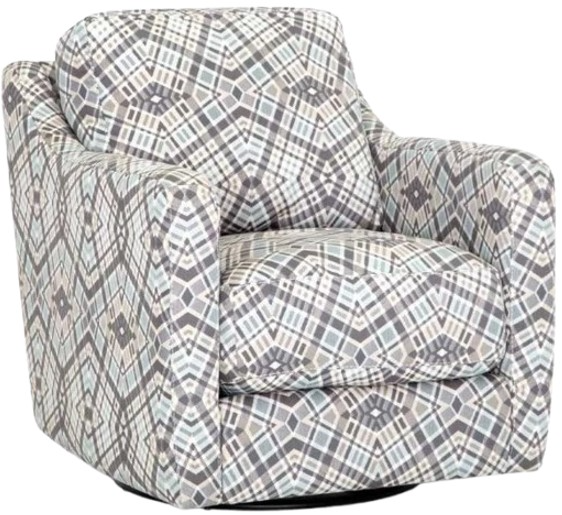 The Crosby swivel accent chair is upholstered in a dimensional chenille with a novelty mosaic print with track arms. This collection features reversible seat and back cushions for increased comfort and durability. Read More