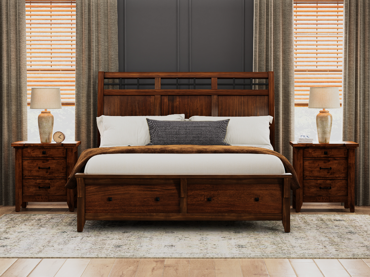 The Gage Bedroom Set combines timeless design with everyday functionality, creating a warm and inviting space rooted in classic style. Available in King or Queen sizes, this set includes the Gage Sleigh Storage Bed, a spacious 9-drawer dresser, and a coordinating mirror—all finished in a rich chestnut wood tone that adds depth and elegance to any room. Read More