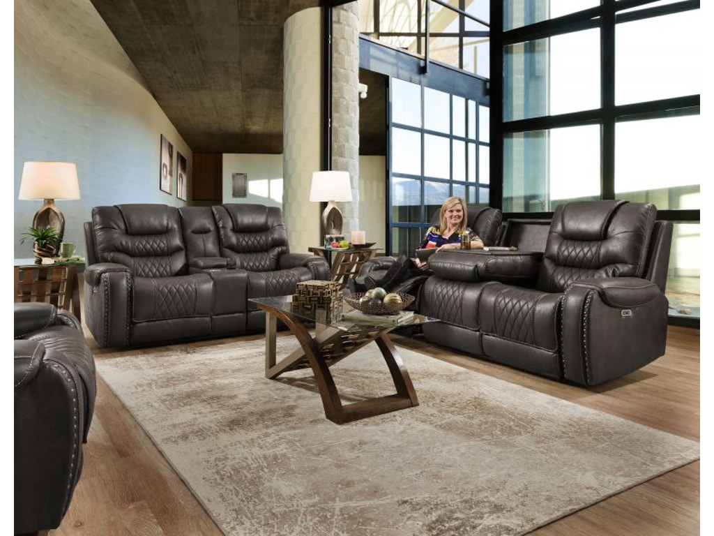 Experience the epitome of modern comfort with the Gazelle Grey Power Headrest Reclining Loveseat. Boasting contemporary styling that effortlessly complements any décor, this loveseat is a perfect blend of form and function. Beautifully stitched and upholstered in gray fabric with diamond stitching, it adds a touch of sophistication to your living space.Sink into luxury with the high-density MicroDynamic foam seating, ensuring a comfortable, supportive, and sustainable air ride cushion. The Power Headrest feature allows you to personalize your seating experience, while the nail head trim adds a subtle yet distinctive accent, enhancing the overall aesthetic.Elevate your lounging experience with the Gazelle Grey Power Headrest Reclining Loveseat, where style meets functionality seamlessly. Immerse yourself in the thoughtful design, superior comfort, and contemporary flair of this exquisite piece that transforms your living room into a haven of relaxation and style.