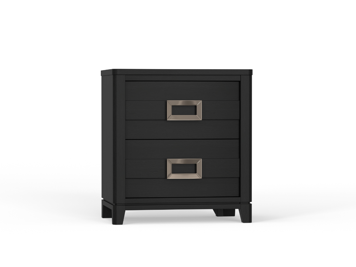 The Godfrey Nightstand blends modern elegance with everyday functionality, making it a perfect bedside companion. Crafted from durable MDF and engineered wood in a sleek black finish, it features gently sloping drawer fronts that add a graceful, contemporary touch. The silver square hardware provides a clean, stylish contrast, while the compact design ensures it fits seamlessly into any bedroom layout. With two drawers, including a felt-lined top drawer for delicate items, the Godfrey Nightstand keeps essentials close at hand while maintaining a sophisticated look. Read More