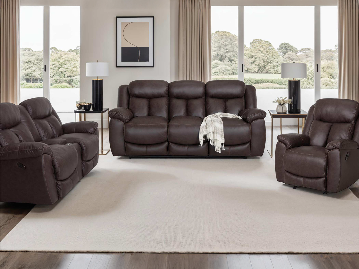 The Hunter Power Sofa, Loveseat, and Recliner Set delivers the perfect mix of plush comfort, modern convenience, and classic style—now available in your choice of Stone or Brown polyester fabric. This complete living room set is designed for everyday relaxation and built with quality American craftsmanship to stand the test of time. Read More