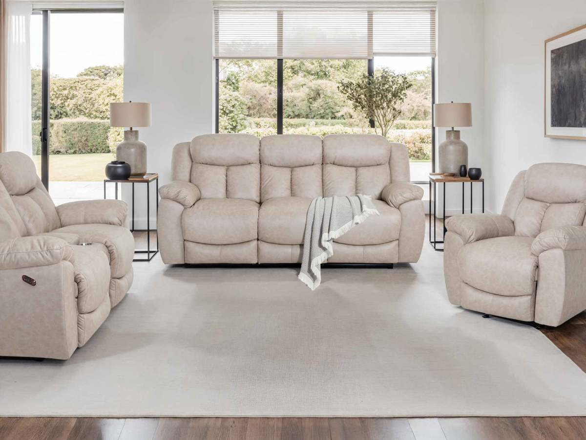 The Hunter Power Sofa, Loveseat, and Recliner Set delivers the perfect mix of plush comfort, modern convenience, and classic style—now available in your choice of Stone or Brown polyester fabric. This complete living room set is designed for everyday relaxation and built with quality American craftsmanship to stand the test of time. Read More