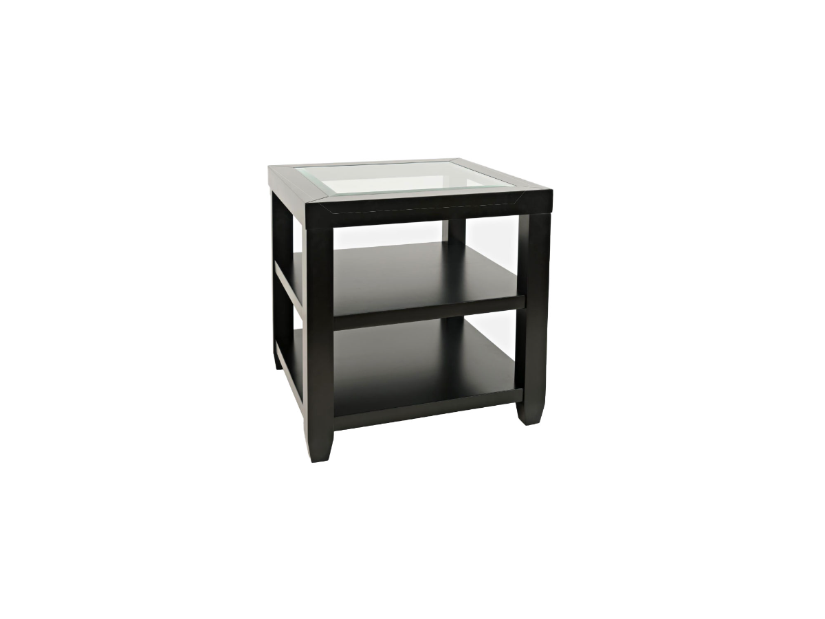 The Icon Table collection introduces a sleek and modern aesthetic to your living space. Available in cocktail and end table variations, these pieces feature a striking black wood finish with a glass inset top. The cocktail table is designed with a practical open shelf at the bottom, offering additional storage or display space. Meanwhile, the end table boasts two open shelves at the bottom, combining style and functionality. Elevate your living room with the contemporary design of the Icon Table collection, where form meets function seamlessly.