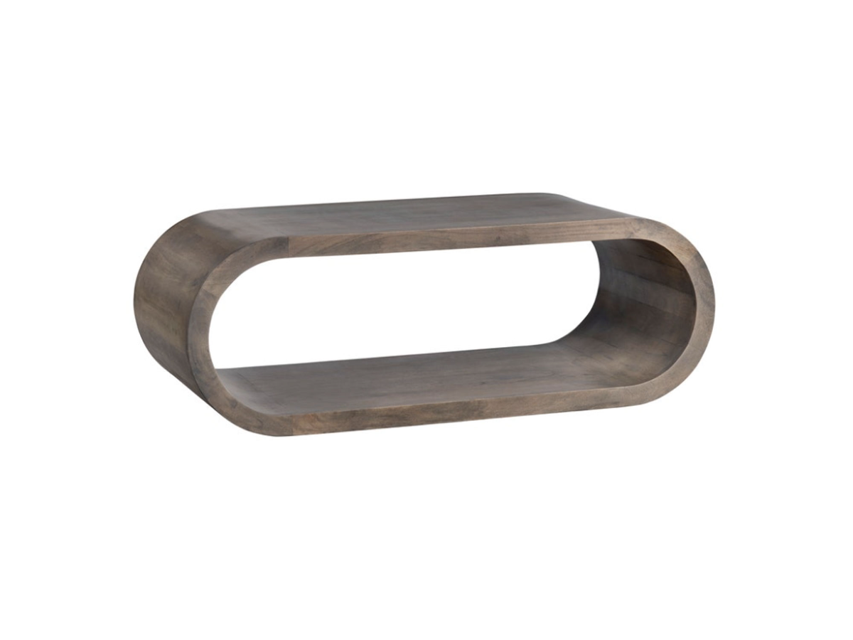 The Infinity Coffee Table features a striking oval-ring silhouette when viewed from the side, creating a sculptural yet practical centerpiece for your seating area. Its flat top provides ample space for drinks, décor, or everyday essentials, while the bottom shelf adds extra storage, keeping your space neat and organized. The gently rounded sides seamlessly connect the top and base, giving the table a smooth, flowing aesthetic. The Infinity End Table complements the coffee table with a unique design of its own. Featuring a flat top and bottom, its convex sides extend outward in a squished-circle shape, adding visual interest while maintaining a balanced and sturdy form. Perfect for holding a lamp, books, or decorative items, this end table enhances any space with its stylish presence. With their gray-washed wood finish and eye-catching silhouettes, the Infinity Tables offer a modern yet timeless appeal. Whether used individually or as a set, they bring effortless sophistication and functionality to your home.
