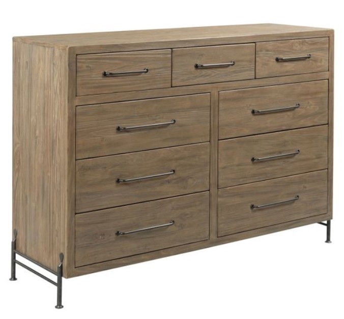 A little taller than a typical dresser, the Henderson Mule Chest provides six deep drawers and three smaller drawers for excellent storage and organization. The styling is both original and subtle for a clean aesthetic. This is achieved through a design process that envisioned a framed cabinet design with mitered posts. Added within that are thick parting rails to create a stacked box effect. The whole case is then supported with steel foot brackets.