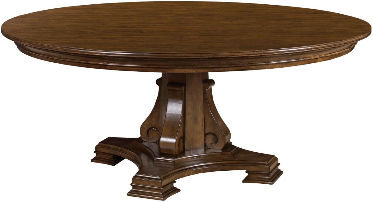 The Stellia Pedestal Table makes a grand statement in the dining room. Shown here in a 60 inch diameter version, it is also available in a 72 inch size. It features our Kinguard performance finish for added protection against common spills, and is made of solid alder wood to last for generations.
