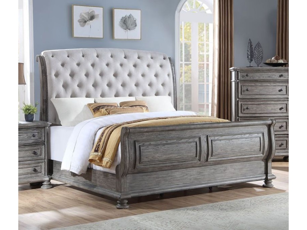 Elevate your bedroom with the Lakeway Bed, a symbol of timeless elegance and comfort. Available in king or queen sizes, this traditional upholstered tufted sleigh bed is designed to bring sophistication to your bedroom sanctuary. The exquisite sandblasted grey pecan finish graces every inch, enhancing the bed's aesthetic appeal and pulling together the room with a touch of refined charm. Indulge in the luxury of a bed that seamlessly combines classic design with modern comfort. The tufted upholstery adds a plush, inviting texture, creating a cozy haven for relaxation. The sleigh bed silhouette adds a hint of drama, making a bold statement in your bedroom decor. Choose the Lakeway Bed to elevate your sleep space, where the artistry of design meets the comfort of tradition. Immerse yourself in the superior quality of craftsmanship and the allure of the sandblasted grey pecan finish, creating a bedroom retreat that is both timeless and inviting.