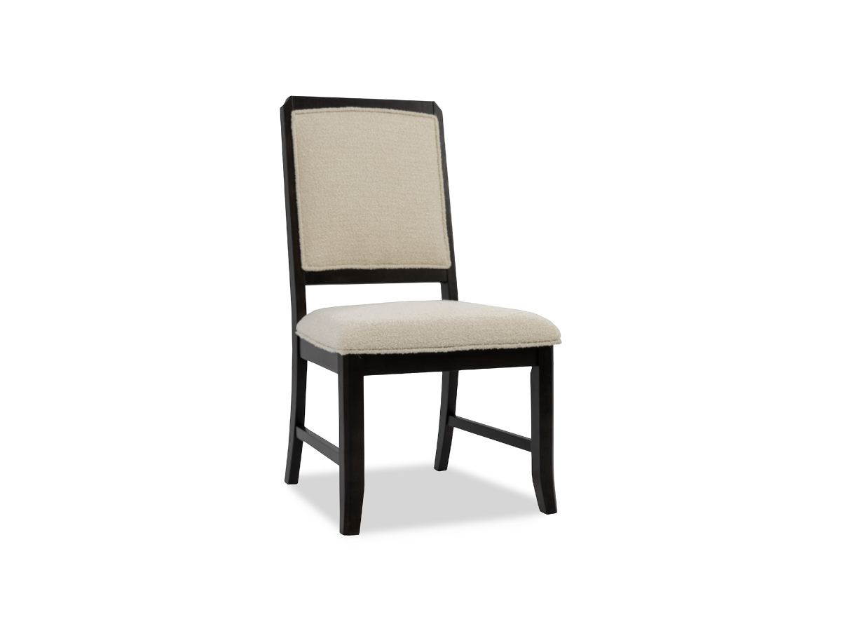 The Madison Side Chair is a striking and stylish addition to any dining room or kitchen. Its rich dark cherry brown finish exudes warmth and elegance. The white upholstered back and seat not only provide a comfortable place to sit but also contrast beautifully with the dark wood. The upholstery is crafted from a soft material, ensuring that you and your guests will be seated in comfort during meals and gatherings. What sets this chair apart is its attention to detail – the seat back features a diamond detailing that can be seen from the backside, adding a unique and eye-catching element to the design. This intricate detail is framed in wood, showcasing the chair's craftsmanship. The Madison Side Chair is a perfect choice for those who appreciate the combination of classic design with a touch of contemporary flair. It offers both style and comfort, making it an ideal seating option for your dining space. Read More