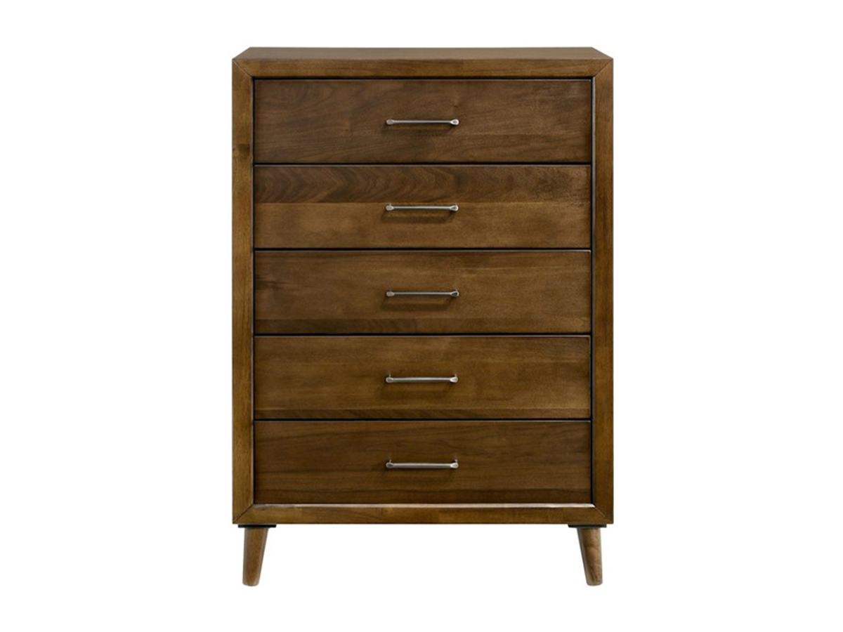 The Maxwell Chest offers streamlined storage with a warm, mid-century modern aesthetic, making it a stylish and practical addition to any youth bedroom. Finished in a rich brown walnut tone, this five-drawer chest highlights the natural wood grain for added depth and character. Read More