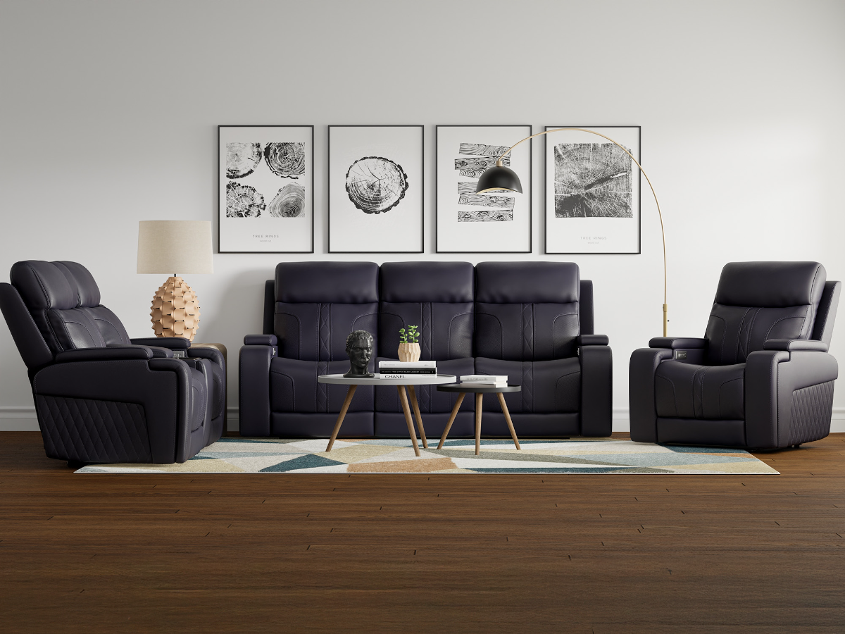 The Melody Audio Sofa, Loveseat, and Recliner Set redefines home entertainment seating with premium comfort and advanced technology in every piece. Upholstered in slate blue top grain leather, this collection is built on commercial-grade hardwood plywood frames with a 300lb mechanical capacity per seat for lasting durability. Unlike other Melody models, every piece in this set features an immersive Bluetooth home audio system, turning your living room into a personal theater. Triple power adjustability lets you customize the headrest, lumbar, and footrest, while zero gravity positioning and extended footrests provide unmatched relaxation. Read More