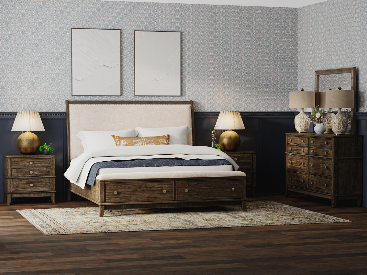 The Mindi Bedroom Set offers a perfect blend of timeless elegance and modern functionality, making it a stylish foundation for any bedroom. Available in King or Queen sizes, this set includes the beautifully designed Mindi Bed along with the coordinating dresser and mirror—all finished in a soft gray brushed tone that brings warmth and sophistication to your space. Read More