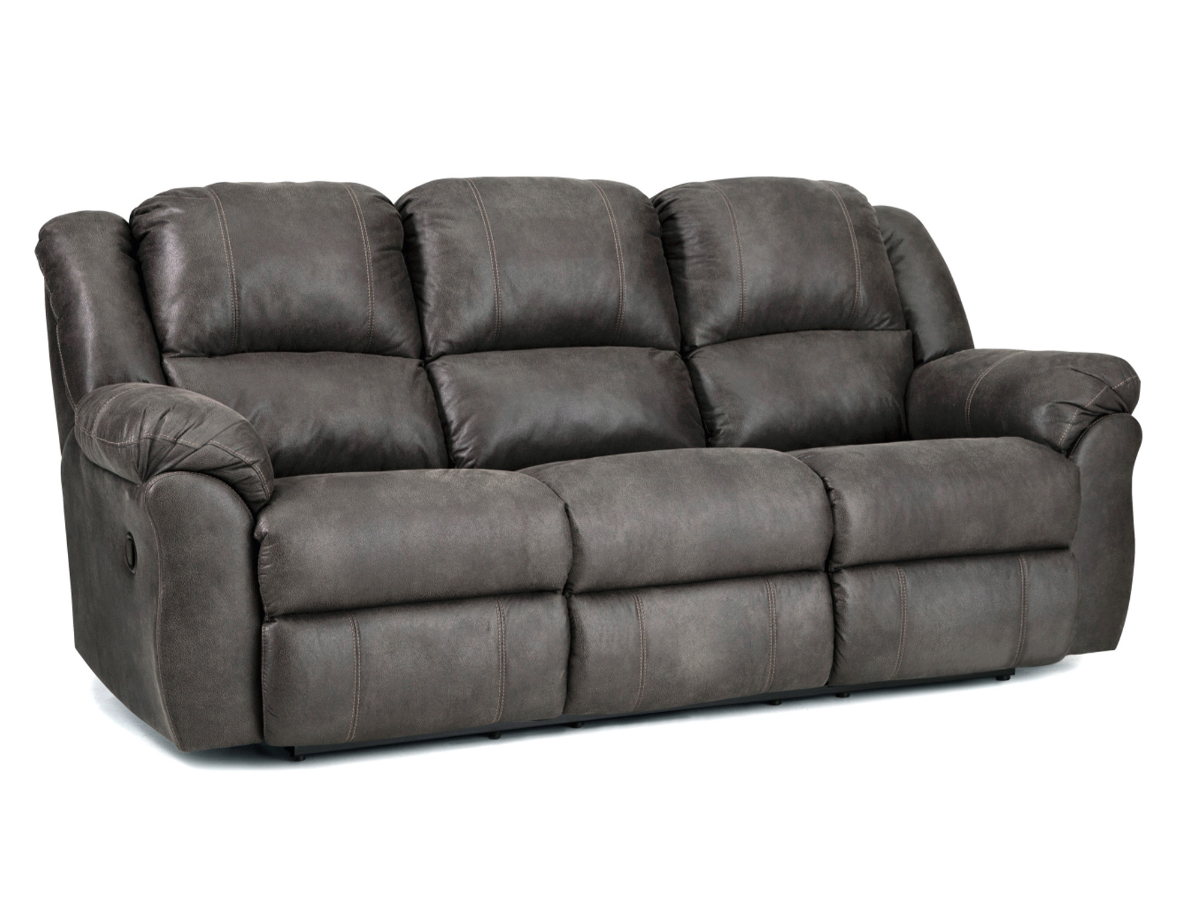 Built in the USA with quality and longevity in mind, the Moonlight Reclining Sofa features a solid frame with no particle board or OSB, ensuring long-term durability. Each reclining seat is equipped with a smooth manual pull-tab release on the side, allowing you to kick back and relax with ease. With a 350lb weight capacity per seat, it provides reliable support for everyday use. The thickly padded cushions, supportive backs, and generously sized seating make this sofa perfect for lounging, movie nights, or casual gatherings. The rich dark gray color adds a contemporary touch that complements a wide range of décor styles. Whether used on its own or paired with matching pieces, the Moonlight Reclining Sofa delivers American-made quality, manual reclining comfort, and clean, modern appeal designed to fit seamlessly into your home.