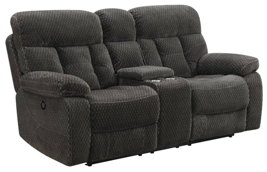 Elevate your relaxation experience with the Bravo Dual Recliner Console Loveseat with Power Footrest in Charcoal. Crafted for optimal comfort and convenience, this loveseat features two power footrests, a built-in storage console, and two cupholders. Read More