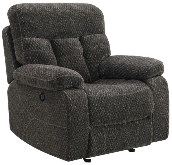 Unwind in style with the Bravo Glider Recliner with Power Footrest in charcoal. This sleek recliner is upholstered in sumptuously soft 100% polyester easy-care fabric, ensuring a luxurious seating experience. The versatile Bravo collection seamlessly complements any setting, making this glider recliner the perfect choice for your living space. Read More