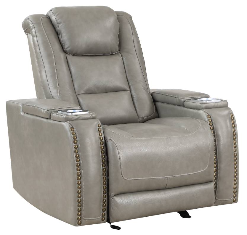 The Breckenridge Genuine Leather Power Glider Recliner with Adjustable Headrest in Gray offers a perfect blend of comfort, style, and practicality for any living space. This recliner is crafted with a combination of hardwood and manufactured woods, ensuring a durable and sturdy frame that provides long-lasting support. Read More
