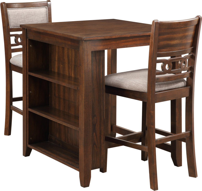 The small space friendly Gia Counter Storage Table and Chair Set has a built-in shelf unit that provides the ideal spot for dinnerware or kitchen essentials. The dining table and chair legs are crafted of solid Rubberwood to add strength and stability. Read More