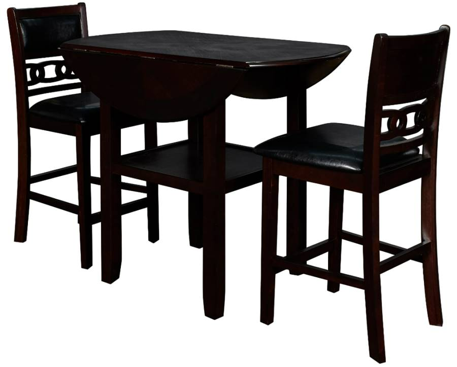 The small space friendly Gia Counter Drop Leaf Table and Chair Set has two 8" drop down leaves that transform this dining table from a 42" round dining set to 24" wide, fitting into compact spaces with ease. The counter table and chair legs are crafted of solid Rubberwood to add strength and stability. Read More