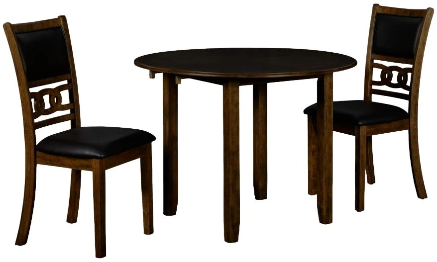 The small space friendly Gia drop leaf dining table and chair set has two 8" drop down leaves that transform this dining table from a 42" round dining set to 24" wide, fitting into compact spaces with ease. The dining table and chair legs are crafted of solid rubberwood add strength and stability. Read More