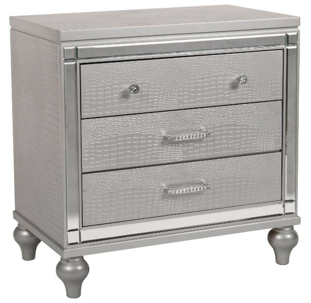The Valentino 3-Drawer Nightstand in Silver is a luxurious addition to any bedroom. Crafted from a blend of manufactured and solid woods, it is built to last while maintaining its distinctive appeal. Read More