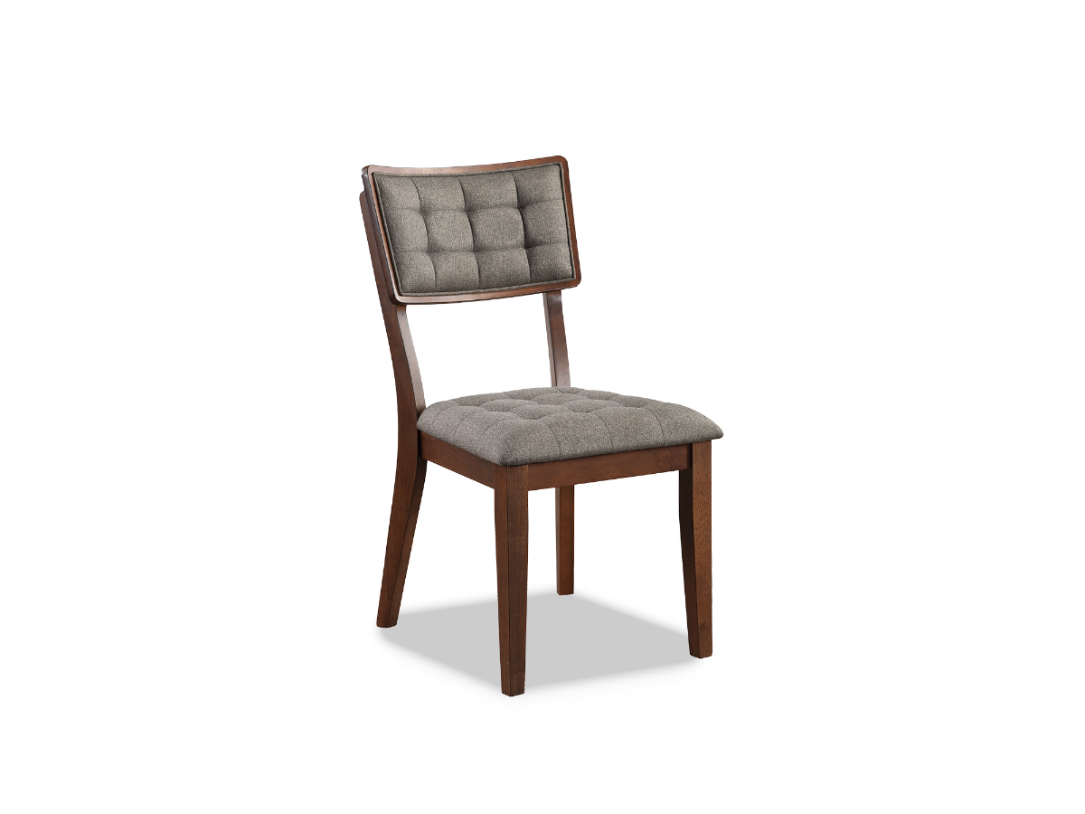 Elevate your dining experience with the distinguished Norman Side Chair, a perfect balance of comfort and style. Crafted from rich brown wood, this chair exudes classic charm while providing a sturdy foundation for your seating needs. The gray upholstered seat and back, adorned with elegant tufting, introduce a touch of sophistication and luxurious comfort. Designed to complement a variety of dining tables, the Norman Side Chair effortlessly blends into your interior decor, enhancing both aesthetics and functionality. Whether you're enjoying a casual meal or hosting a formal dinner, these chairs offer a comfortable and stylish seating solution. Embrace the union of quality craftsmanship and refined design as you make the Norman Side Chair an essential part of your dining space