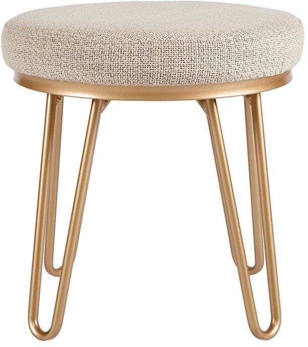 Reinvigorate your home decor with the simple elegance of the INK+IVY Beverly Round Stool. Flaunting a gold patina frame and legs, this round stool features an attached cushion in tan upholstery to create a stunning mid-century look. Beautify your living room or bedroom by incorporating the gorgeous appeal of this round stool into your decor. No assembly required.