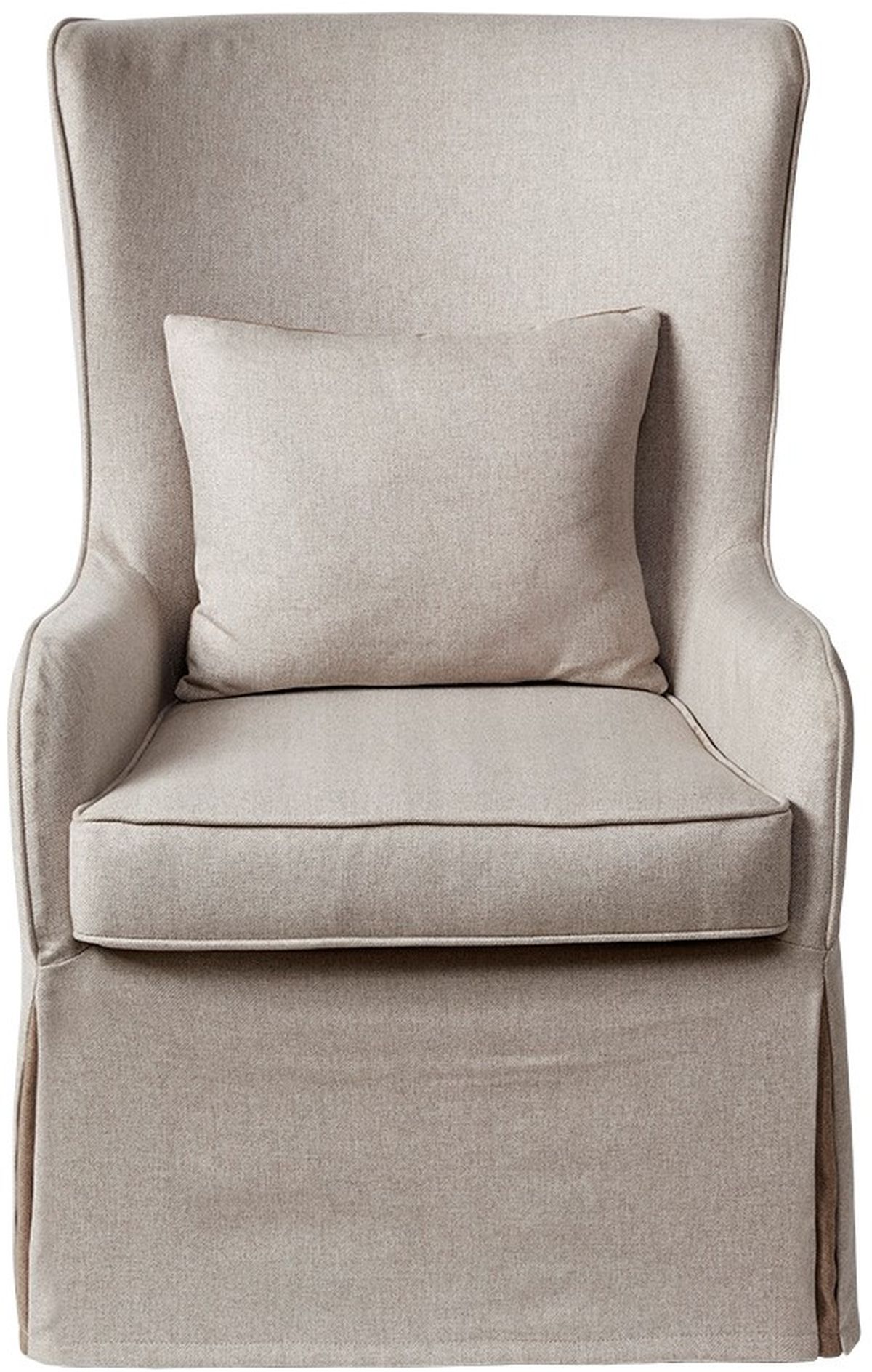 The Regis Accent Chair by Madison Park Signature will add a subtle elegance to your home. Wrapped in a warm cream slipcover, this accent chair flaunts a curved high back that gracefully flows into low swooping arms, for an alluring look. A box cushion with high-density foam filling sits atop the pleated slipcover, offering a relaxing seating experience. Simple and elegant, this accent chair is sure to complement your living room décor with its warm natural appeal. Leg assembly is required.
